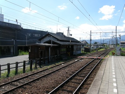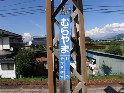 [ 村山駅 むらやまえき ] 長野県須坂市 この駅は長野駅側から見て初めての無人駅で、それと同時に初めての須坂市内の駅です。 島式ホーム1面2線の線路配置で、1線の側線もあります。木造の駅舎があり、もともとは有人駅でしたが、現在は無人駅化されています。また、この駅と柳原駅にある鉄橋「村山橋」は最近架け替えられました。 |