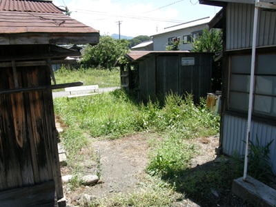 現在でも貨物ホームの段差は残っていて、駐車場に利用されています。草むらの中には線路ものぞいています。
