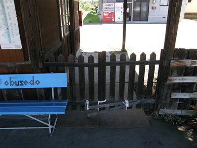 駅舎は使用を停止されていて、現在は駅舎の中からも駅舎の脇からも駅には出入できません。