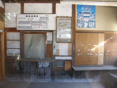 駅舎の中身はほとんど元通り残っているようですが、外側のカギはかけられ、ホーム側は板で塞がれているため立ち入れません。運賃表を見ると木島線が残されているので、少なくとも木島線が廃止される前には駅舎が閉鎖されたようです。