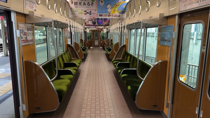 | 3300系 | 1960年代後半、万博開催と堺筋線開業に向けて導入された通勤形電車で、ややこしいが神宝線5000系の京都線仕様。2025年現在、日本の地下鉄に乗り入れる営業車両の中では最古参の形式だが、9300系改造車による置き換えの可能性が高い。 |