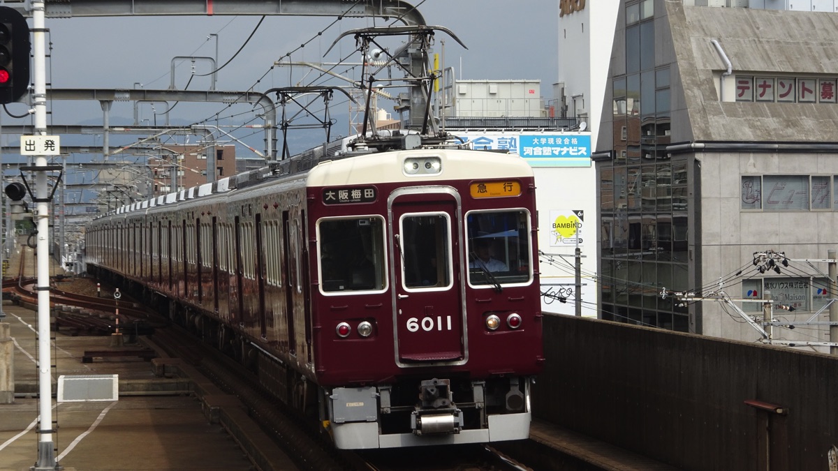 | 6000系 | 5100系をもとに設計された神宝線用の通勤電車で、現在8両編成はすべて宝塚本線で運用されている。1編成は能勢電鉄に譲渡されたが、相互直通扱いで共通運用されている(芝山鉄道に譲渡された京成3500形・京成3600形などと同じ扱い)。 |