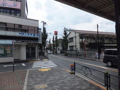 北口の反対側にも出入口があるが、こちらの駅前は民間の月極め駐車場を挟んで住宅地が広がっているだけである。