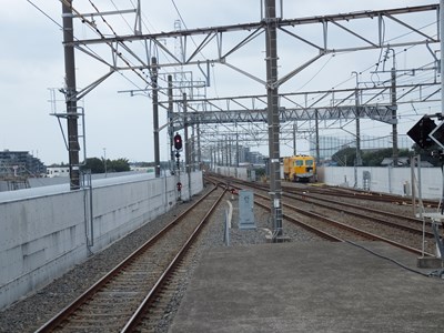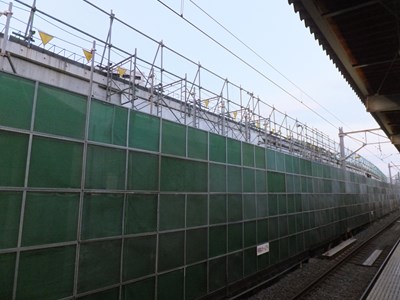 現在のホームと北総線高架橋の間では新たな高架駅の建設が進んでいる。