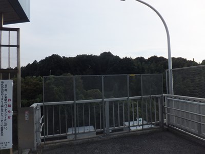 駅舎の前でぷっつりと途切れた跨線橋の先には林しか見えない。駅南側、林の向こうには農地と建材置き場が広がっていて、開発は進んでいない。