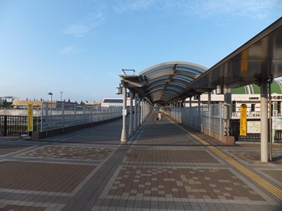 跨線橋は半分だけ上屋に覆われている。