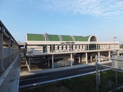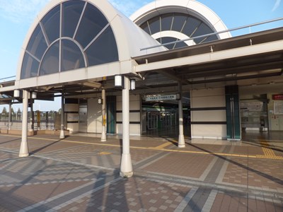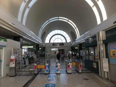 駅舎はドーム屋根が特徴的な建物で、他駅と同様に南北跨線橋に駅舎が面している。