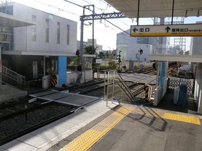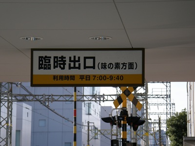 その味の素側に朝にのみ開かれる臨時の出入り口があります。改札の形を見る限りICカード専用のようですが、こちらも駅舎がリニューアルされています。