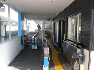 黒を基調としたスタイリッシュな駅舎です。改札は3台しかありません。