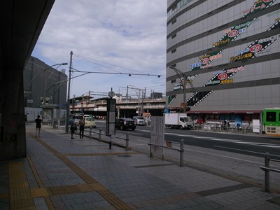 駅前は中央通りで、北側にはJR線が見えます。向かい側のヨドバシカメラはもともと京成の本社でした。