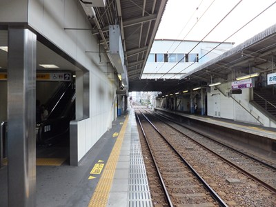 相対式2面2線のホームは、上野方がカーブにかかっています。