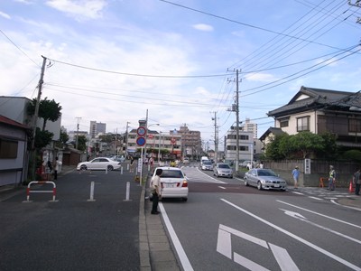 北口は南口とは対照的に小さな出入口で、道路に直接面しています。駅前の道路を北側に行くと、JR津田沼駅に向かいます。