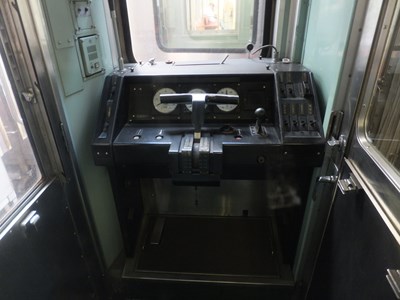 左:運転席後部 右:運転台 いずれも中間に組み込まれた使用停止中の運転席