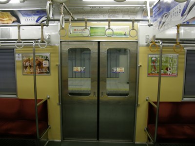 ドアはステンレス無塗装で、車内案内装置は設置されていない。