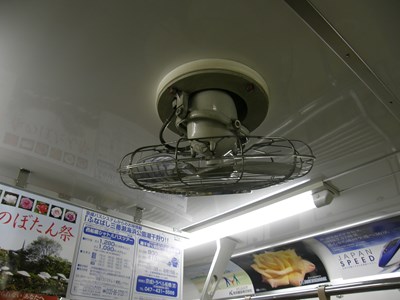 冷房化されているが、ラインデリアは設置されず天井に扇風機が設置されている。