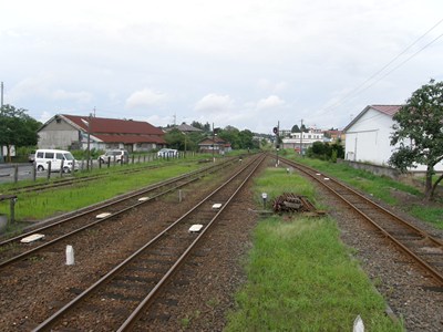 島式・単式混合2面3線の線路配置で、単式ホームの裏側には貨物側線の跡があります。