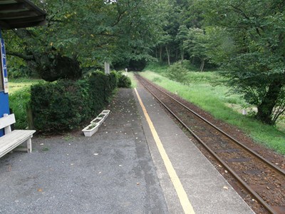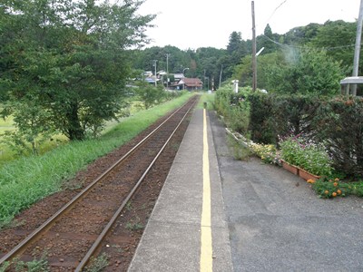 ホームは単式1面1線で、長さはあまりありません。花壇になっていて、手入れしている人がいるようです。