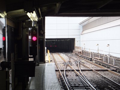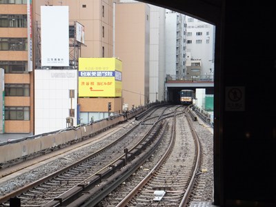 浅草方は高架区間になっていますが、すぐに駅のある窪地の淵に突き当たり、トンネルの中に入ります。