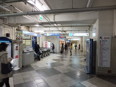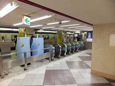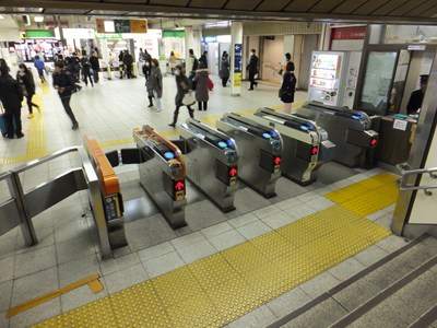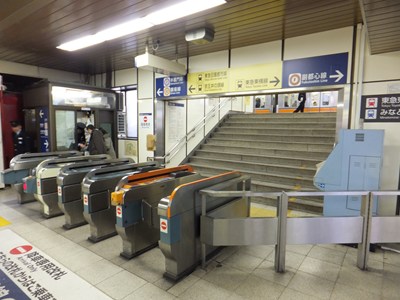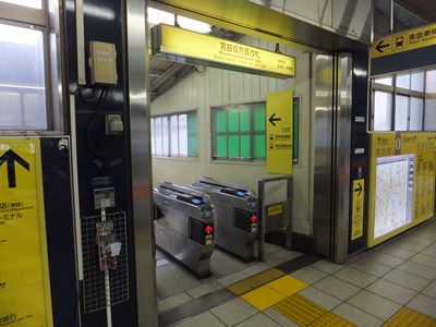 この改札口は降車ホーム中程にある改札口で、コンコースに直接つながっています。JR線との乗り換えに便利です。