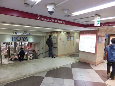 東急百貨店方面改札 左:改札内より 右:東急百貨店 右:改札外より