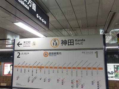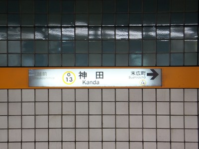神田駅は東京メトロ銀座線の駅で、JR線との乗換駅です。開業当初は終着駅だった駅で、ホームは少し特殊な構造をしています。つい最近まで、「地下鉄ストア」という元祖駅ナカの一部が営業を続けていました。