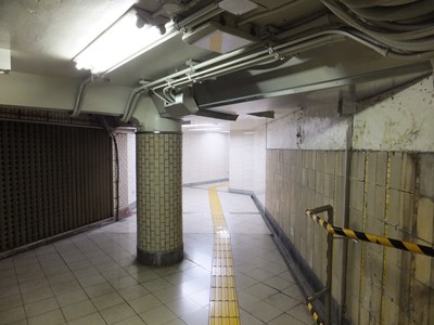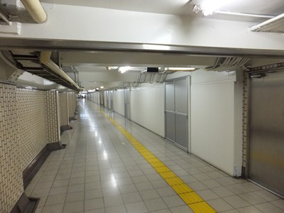 5番出入口と6番出入口の間の地下通路に沿って、地下鉄ストアがありました。近年まで床屋などが営業していたそうですが、現在では仮の壁で覆われています。