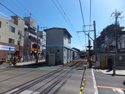 駅舎は上下線で挟まれた狭いスペースにあり、南北から踏切で出入りします。九品仏駅と違い、出入り口を挟んでホームと反対側に駅舎があります。