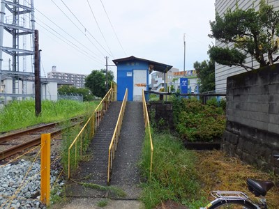 駅の出入口は駅近くの踏切の脇にあり,ホームまでは距離があります。