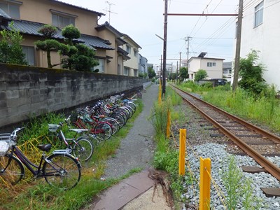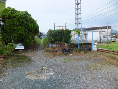 ホームの裏手には細い通路があり,そこを通ると本来の出入り口とは反対側の道路にも出られます。写真は,その通路のホーム終端付近から撮影したものです。