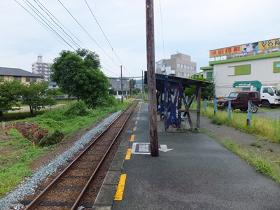 黒髪町駅は熊本電鉄藤崎線の駅です。駅周辺は学校が多く立地し,通学客が利用者の大半を占めています。駅構造は単式ホーム1面1線の単純な線路配 置で,ホーム上には待合室のみがあります。