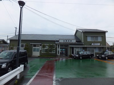 2階建ての立派な駅舎があり、駅前にはタクシー乗り場と駅前広場もあります。