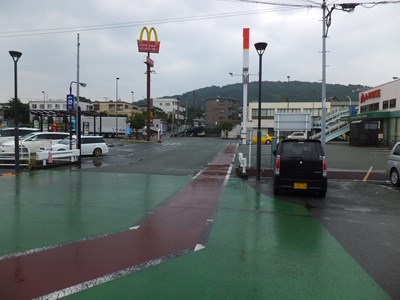 カラー舗装の色が通常(歩道:緑、注意すべき車道:赤)と逆なように感じるのですが、良いのでしょうか。