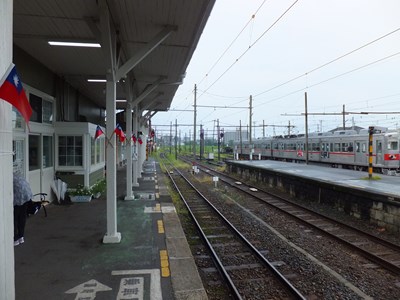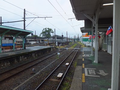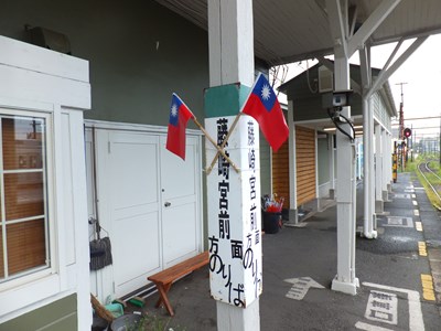 台湾の観光客の一行が来ていたようで、ホームの柱には中華民国の国旗(と呼んで良いかどうかは立場によりけりですが(-