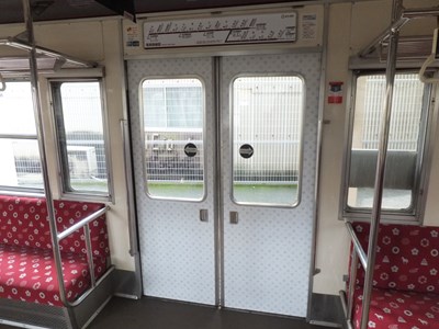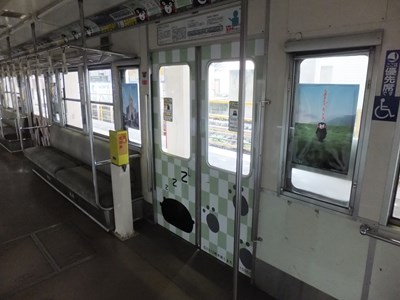 6228Aの内装はほとんど変更されていませんが、ドア内側のラッピングのみこちらの車両にも施されています。柄は6221efとは違うものです。