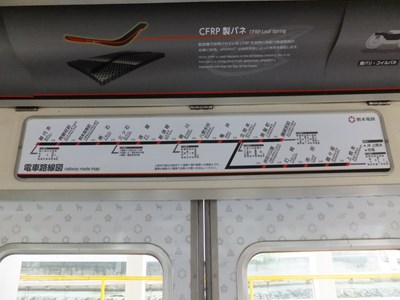 2014年、熊本電鉄の主力車種である6000形のうち1両が改造され、川崎重工が開発した台車「efWING」を営業車両としては世界で初めて 装着しました。efWINGは金属に変わりCFRP(炭素繊維強化プラスティック)を使うことで従来の台車に比べて大幅な軽量化を図った台車です。