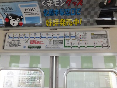 が変更されました。新しい塗装はキャラクター「くまモン」を全面に押し出したもので、「くまモン電車」の愛称が付けられています。
