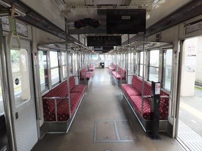 efWINGを履いた6221efの内装はリフレッシュされています。具体的には、座席モケットが変更され、ドア内側に化粧板が貼られるなどしました。