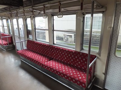 座席のモケットは赤を基調とした柄つきのものに変更されました。