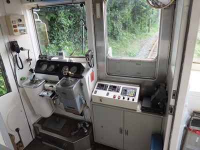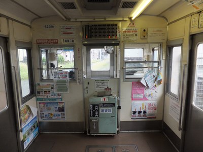 運転席も三田線時代のものを使っていますが、ワンマン関係の機器が置かれて貫通路が塞がれています。また、運賃収受も車内で行う仕組みで、運転室の後ろには運賃箱や料金表が置かれています。