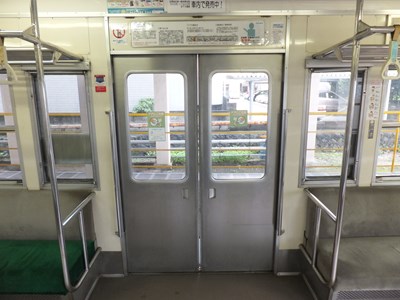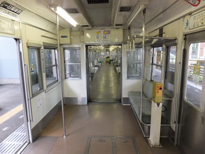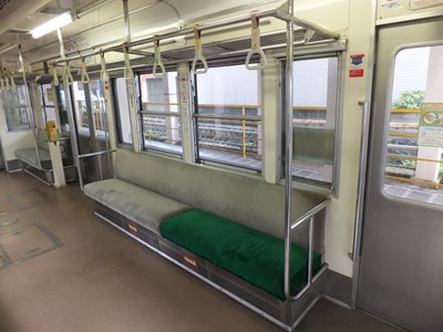 内装は三田線時代と殆ど変わっていません。4ドアロングシートの標準的な通勤型電車です。