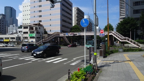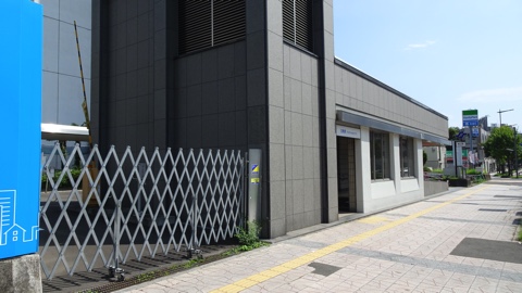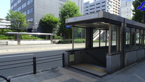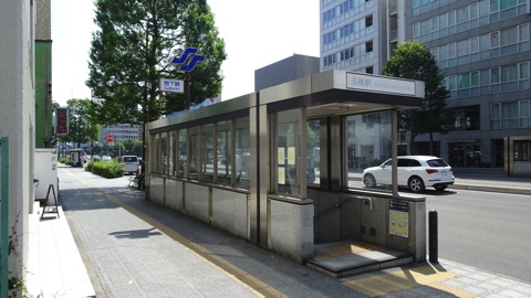 南1出入口と道路対岸の南2出入口の間は幹線道路同士が斜めにぶつかる変則T字路となっている。そのため、駅から南1出入口の間は少し離れている。