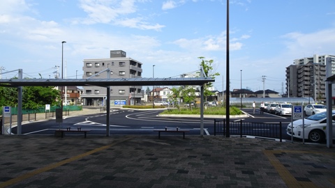 駅東側にはバス乗り場付きのロータリーがある。