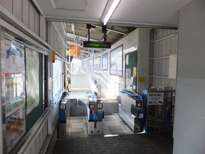 朝ラッシュ時には上りホーム側にもICカード専用の臨時出入口が設けられ、駅南側に向かう通勤者が踏切を2回渡らずに済むようになっている。