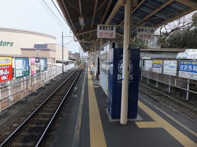 新清水方は「黄色い線の内側」が無くなってしまうほど狭い。