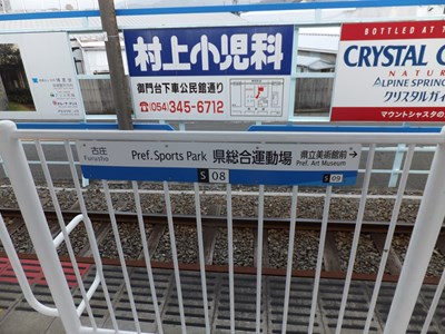 こちらは現在静岡清水線の草薙を除く各駅に設置されている駅名表である。このタイプはほとんどが自立式(県総合運動場駅と同じタイプ)であり、時刻表や駅