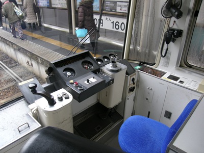 車内の配置は基本的に7500形以前の車両と共通で、運転台後ろのクロスシートが優先席になっています。運転台は8501号の導入当初は1軸ツーハンドル形のマスコン(右手と左手のマスコンが連動して動くタイプのマスコン)が設置されていましたが、8502号以降は従来のツーハンドル形に戻されました。