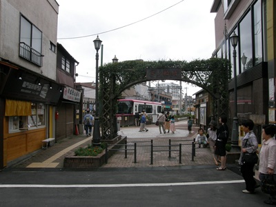 王電ビルを通り抜けると小さな道があり、そこを渡ると都電荒川線の三ノ輪橋駅です。門に絡まったツタがいい雰囲気になっています。