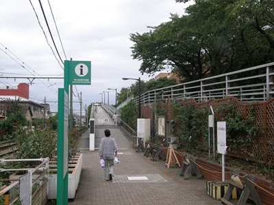 三ノ輪橋方面ホームは水道局の施設に沿って作られた遊歩道に隣接した位置にあり、スロープとは反対側にも出入口が設けられています。
