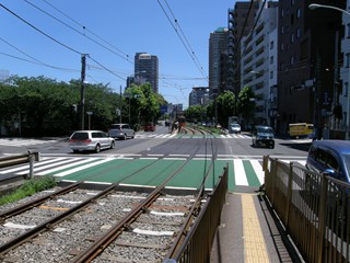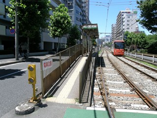 [ 面影橋駅 おもかげばしえき ] 東京都新宿区 面影橋駅は都電荒川線の中間駅では珍しい「道路の真ん中」に位置している駅で、駅名は駅のすぐ脇の神田川に架かる橋の名前からきています。 駅は新目白通りの上下車線に挟まれていて、そのため上下ともにホームの幅はかなり狭くなっています。昔は高田馬場へ向かう線路が分岐する駅でしたが、現在では元に戻り、ただの中間駅になっています。また、新目白通りの拡張前までは当駅や早稲田駅は新設軌道上にあったそうです。 |