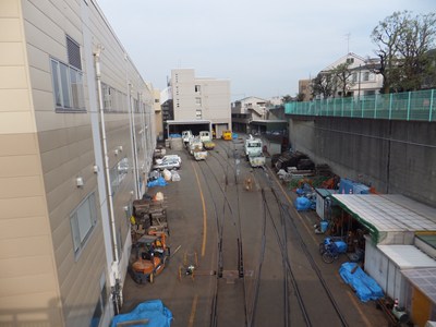 研修場は構造上西馬込駅から直接乗り入れられない構造になっていて、行き来する車両は一旦研修場南側の引き上げ線に引き上げます。